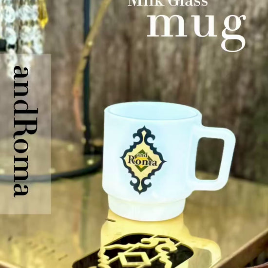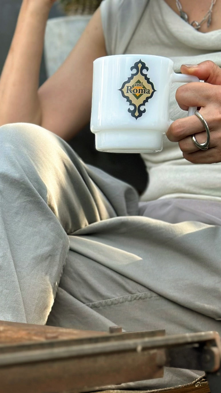ミルクを溶かしたようなやわらかな白と、つるりとした手触りに、andRomaのレトロなブランドマークを添えて。