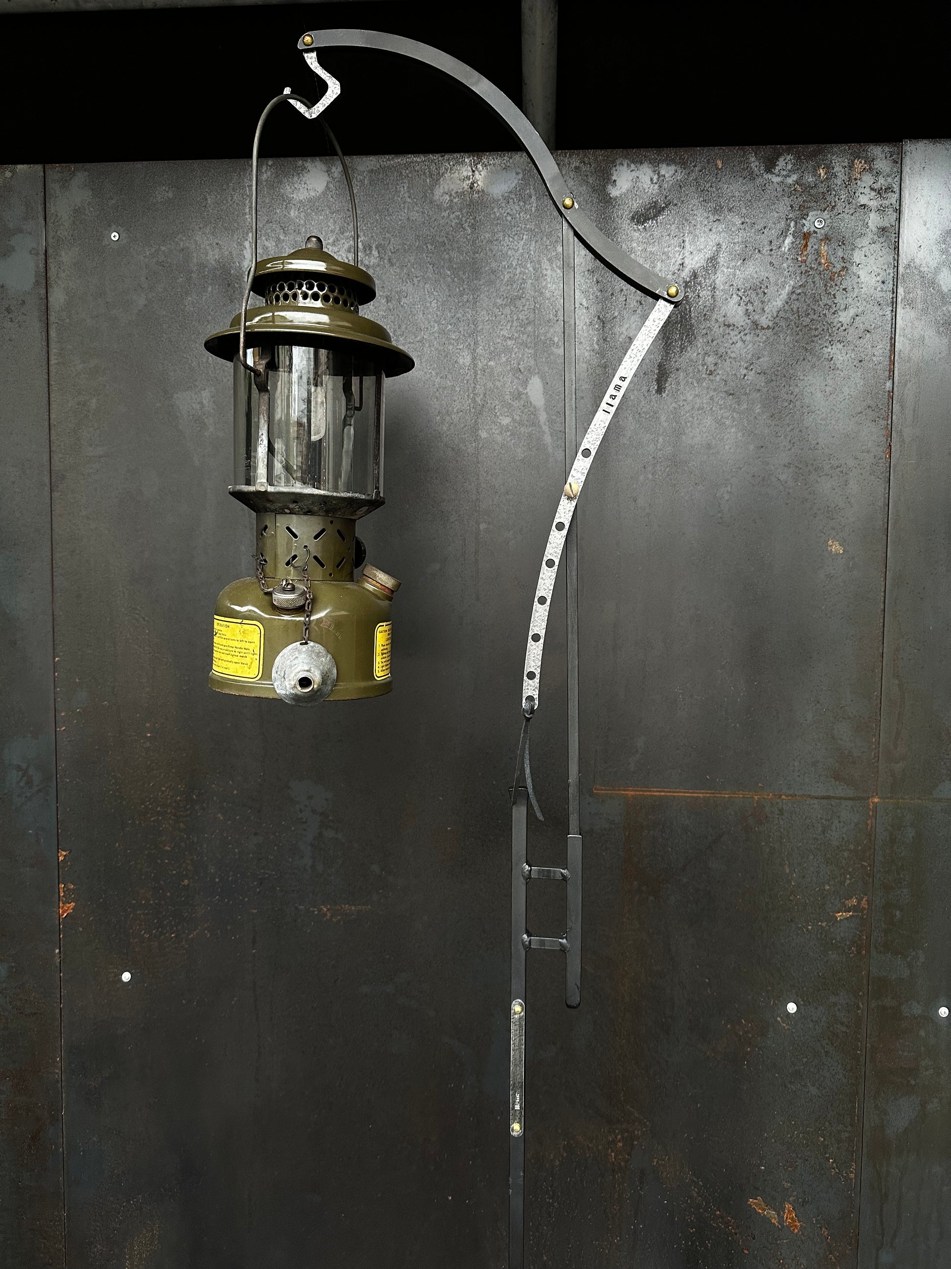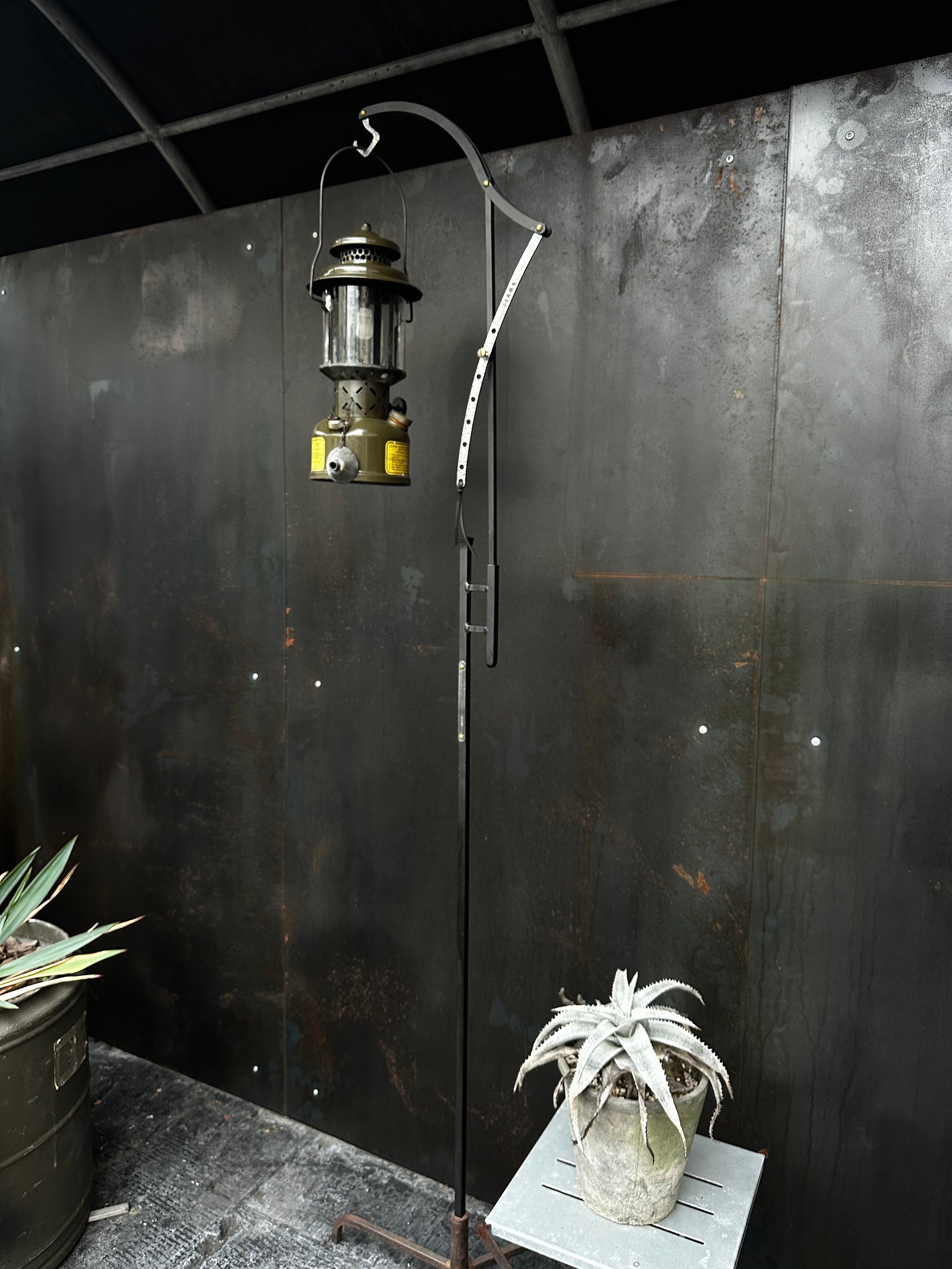 エレガントな曲線のフォルムと、いぶし銀アルミのヴィンテージ感が最高にクールなランタンスタンドのトップとレッグのセットです。レッグ部分をフィールドに伝えて使用します。